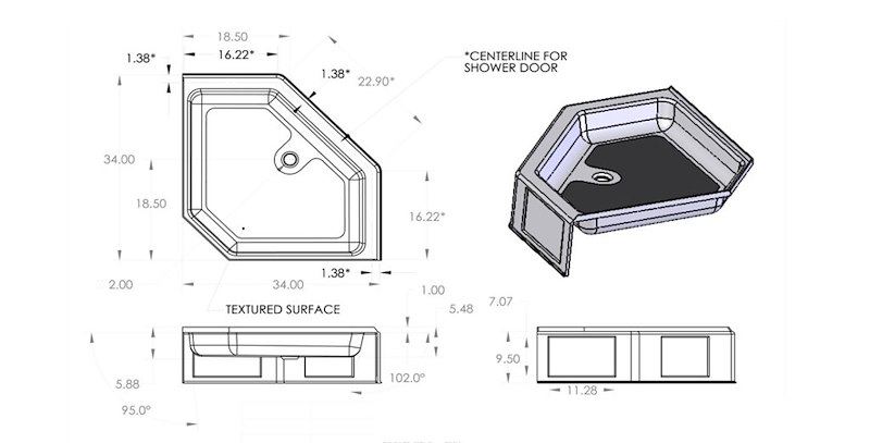Shower Pan; Neo Angle; 34 Inch x 34 Inch x 9-1/2 Inch; Front Center Drain; White; High Impact ABS part # 10-1880